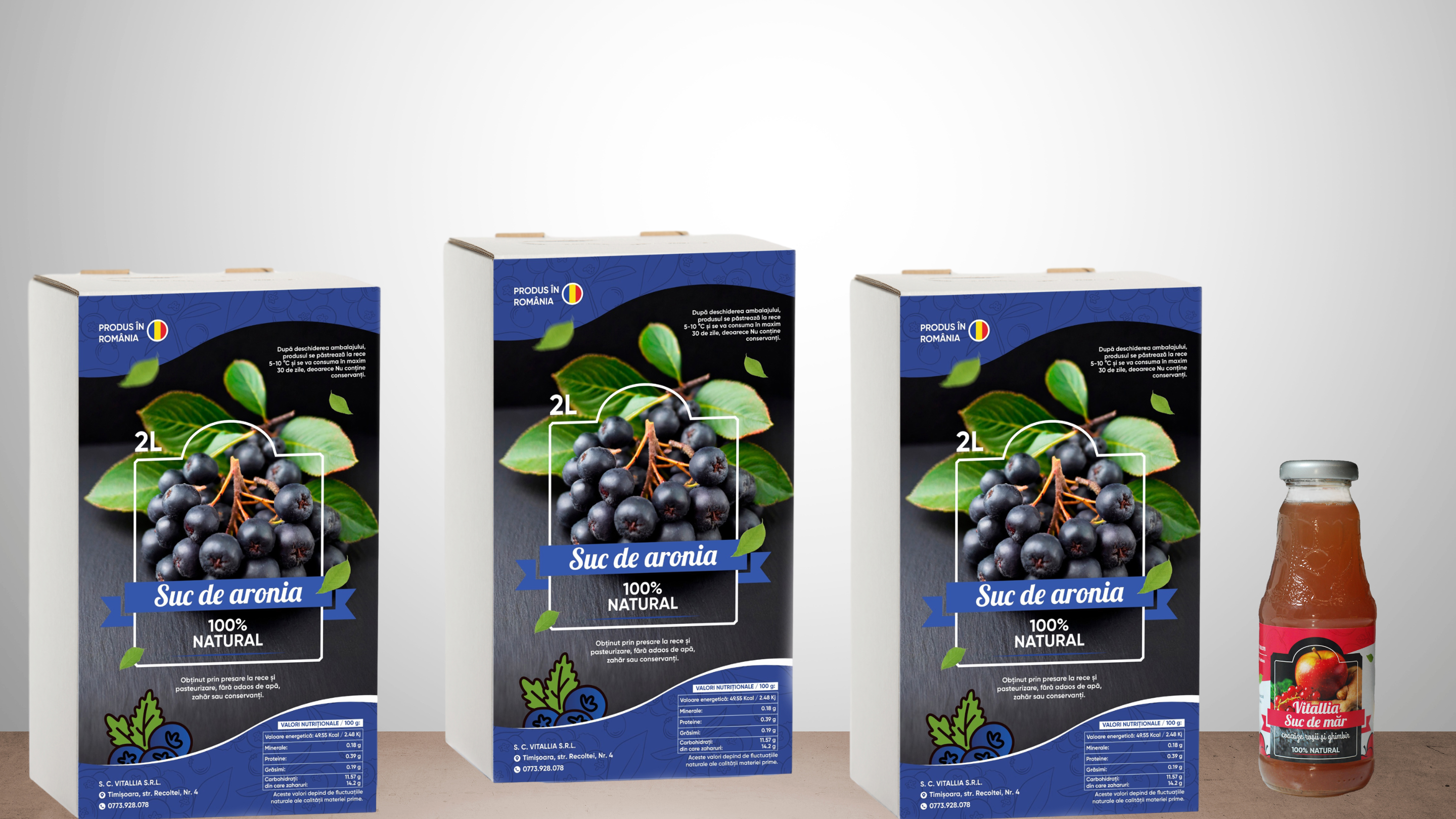 Te invităm să te bucuri de prospețimea și sănătatea oferită de sucurile noastre autentice! Pentru fiecare comandă de 3 sucuri de aronia la 2 litri, primești CADOU un suc de măr și coacaze! 🌟